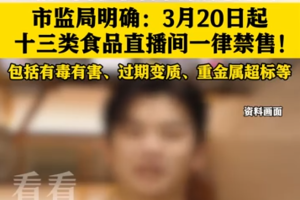 直播间禁售清单出炉:13类食品3月20日起不得通过直播经营