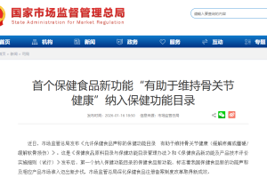 1月16日,国家市场监管总局正式发布《允许保健食品声称的保健功能目录非营养素补充剂(2026年版)》,首次将“有助于维持骨关节健康”列入保健功能目录。该功能明确…